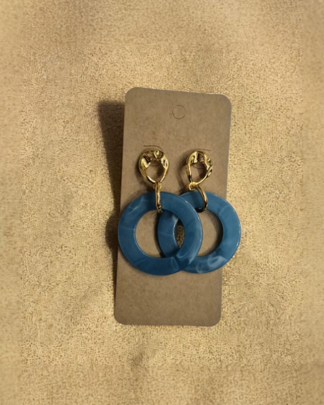 Brinco de resina circular vazado, com base dourada grande, 1 elo dourado. Design exclusivo.