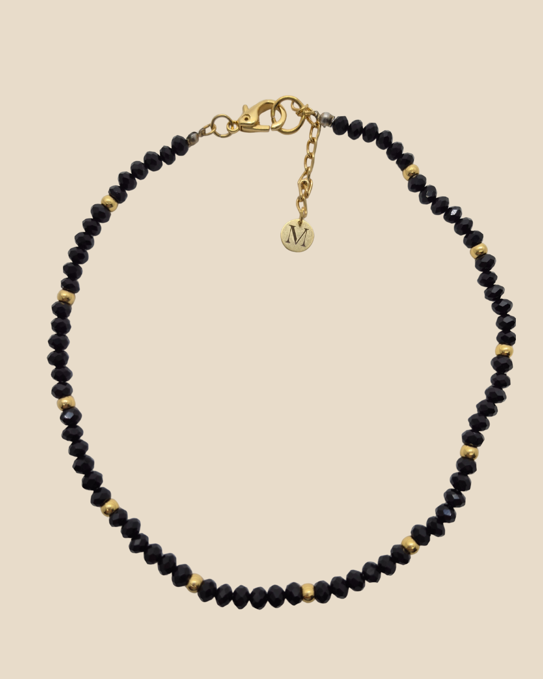 Colar de cristais 6mm com entremeios dourados. Fecho e moeda das marcas dourados. Design exclusivo.