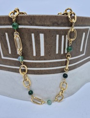 Colar corrente dourada com cristais redondos e elos grossos. Fecho dourado com moeda da marca. Design exclusivo.