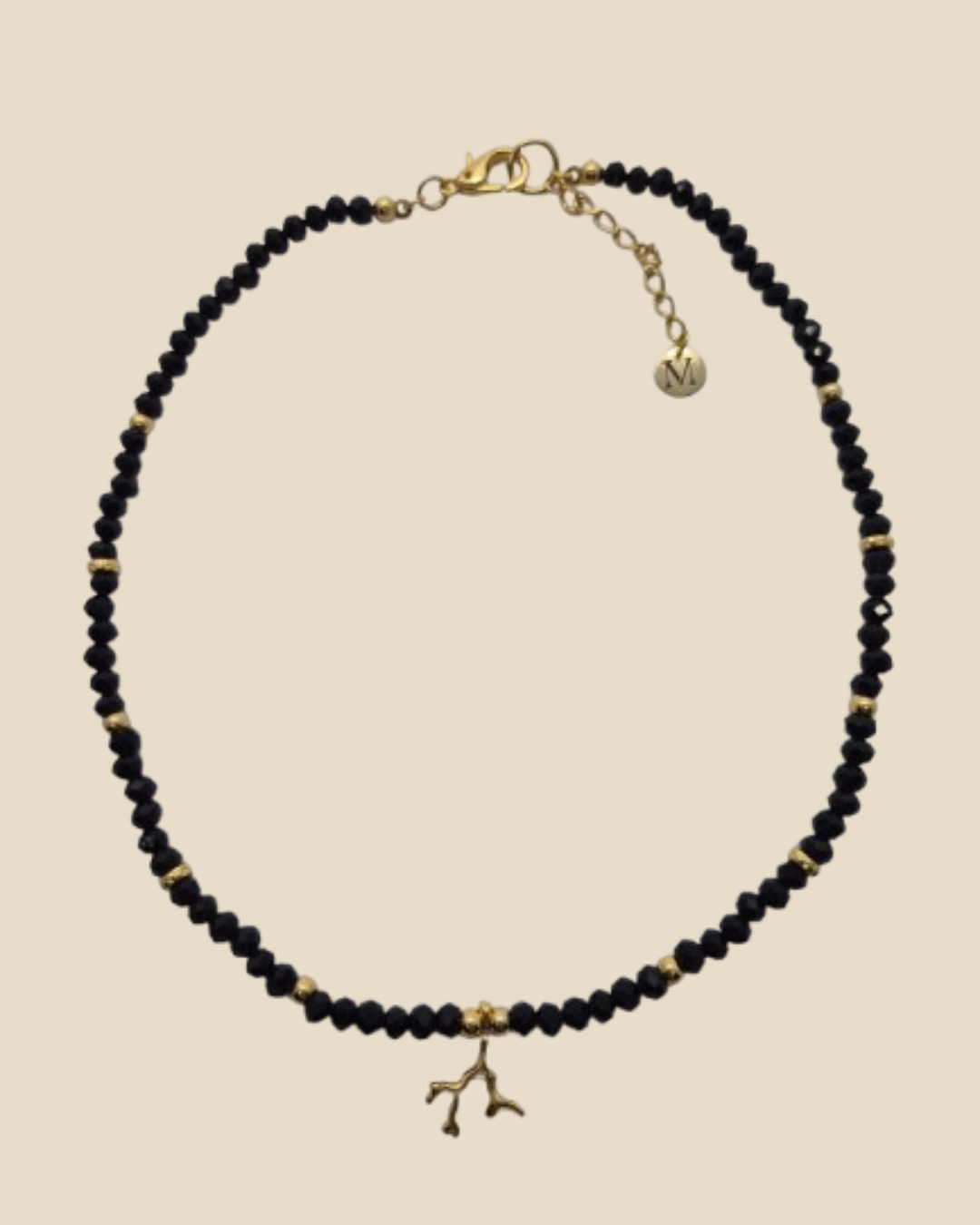 Colar de cristal de uma só cor, entremeios de 2 elos dourados diferentes. Pingente dourado em forma de coral. Design Exclusivo.