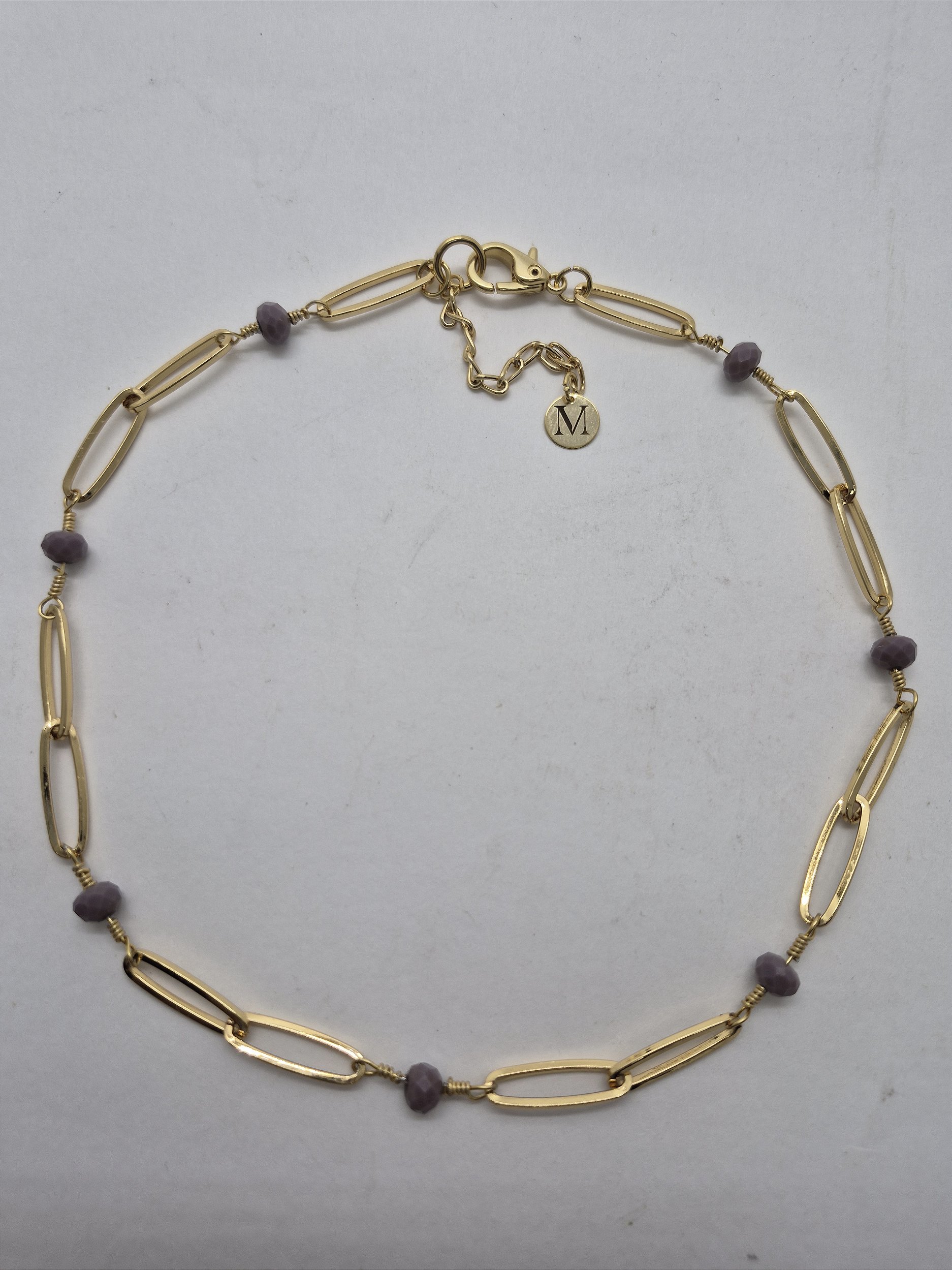 Colar de elos dourados grandes entremeados por cristais 8mm. Fecho dourado com moeda da marca.