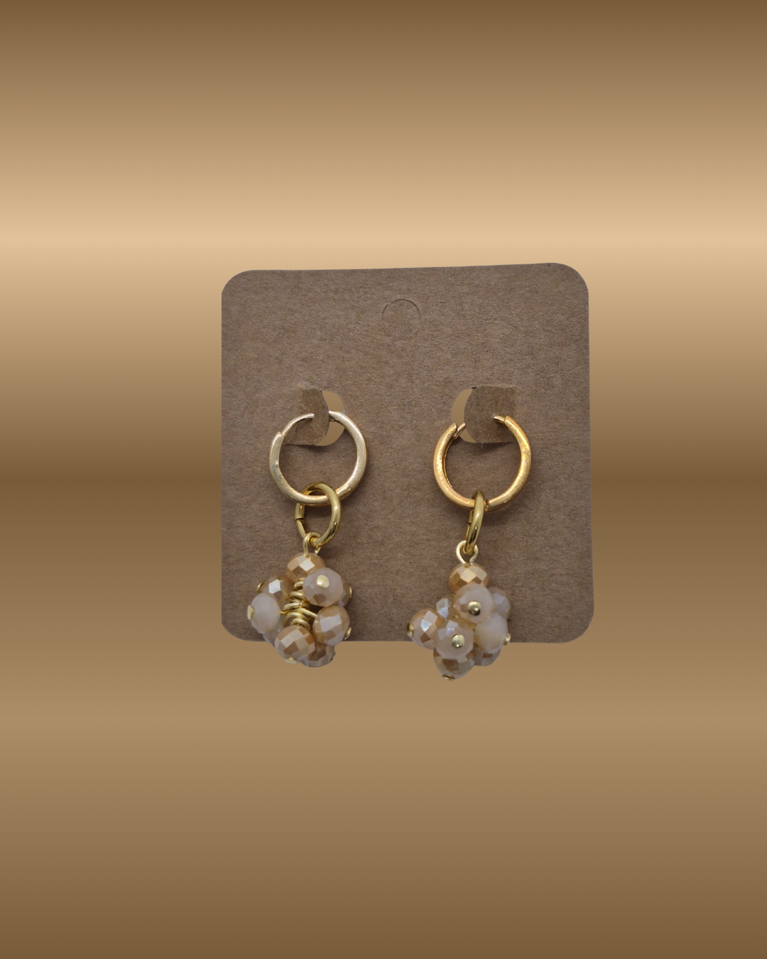 Brinco em forma de bolinha com 9 cristais de 6mm. Base circular e elos dourados. Design exclusivo.