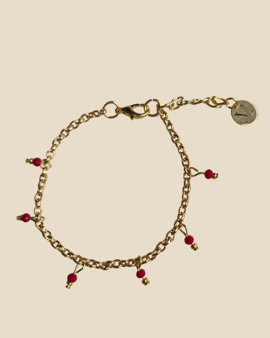 Pulseira dourada com berloques de cristal. Fecho e elo dourado com moeda da marca. Design exclusivo.