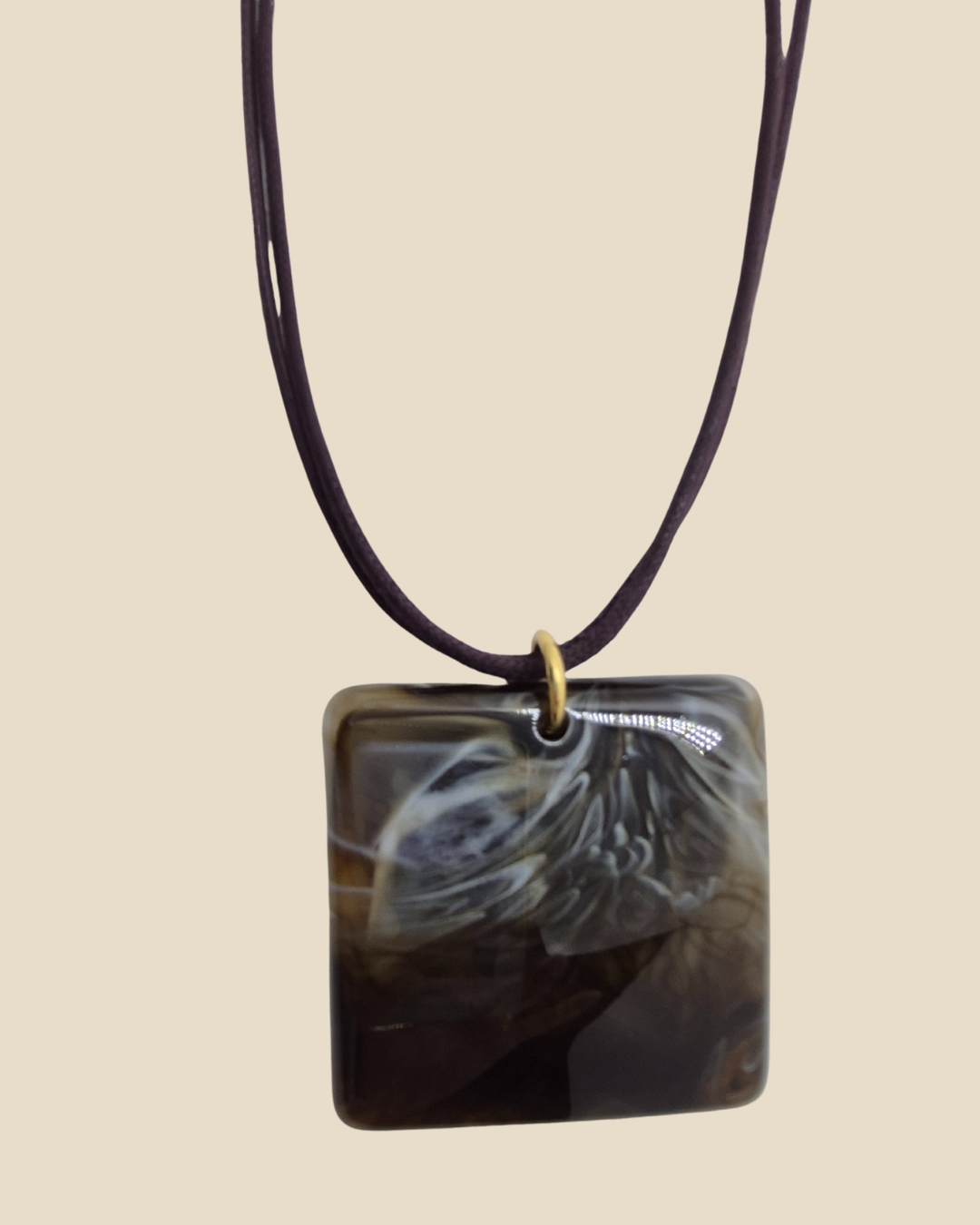 Colar de resina, pingente quadrado grande, com fio de couro.. Design exclusivo.